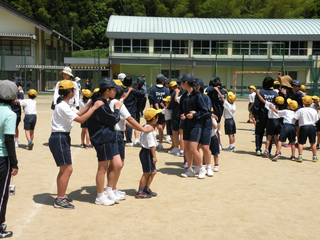 雨乞い銭太鼓、坂より上棒踊り、石匠太鼓の3つの伝承芸能を、東陽小の児童と協力して演舞しました。