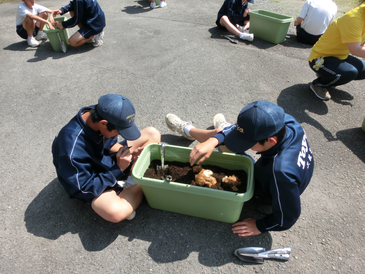 本日4時間目に全校で「一人一鉢・花いっぱい運動」を行いました。