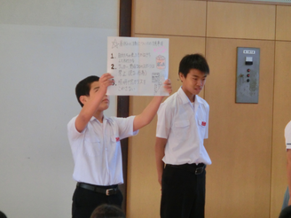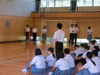 その後、保健給食委員会の発表が行われ、インフルエンザ・風邪の予防について生徒全員への呼びかけが行われました。