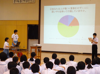 いつものように生徒会執行部と専門委員長からの活動内容が発表された後、図書委員会による発表が行われました。