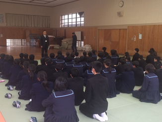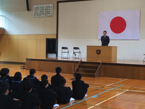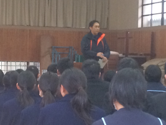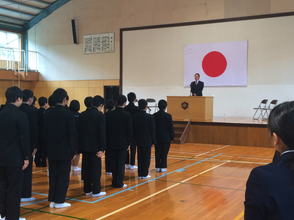本日朝から生徒集会を開きました。