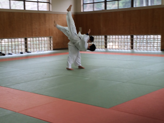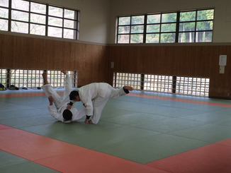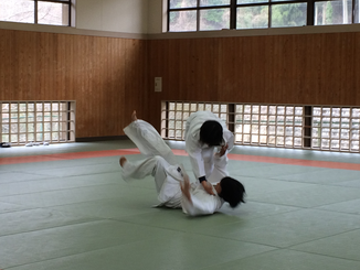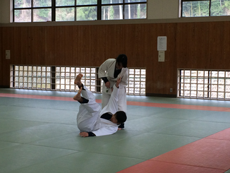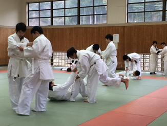 避難完了後は武道場にて昨年に引き続き離脱術の訓練をしていただきました。