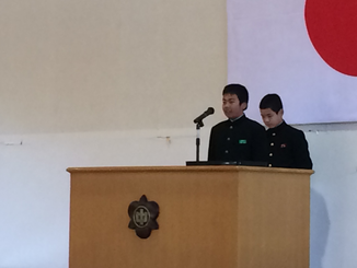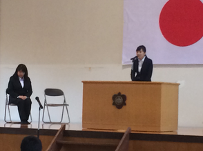 選手の決意表明に続いて応援の生徒による激励の言葉とエール、校長先生のお話、選手宣誓で明日に向けて士気を高めました。