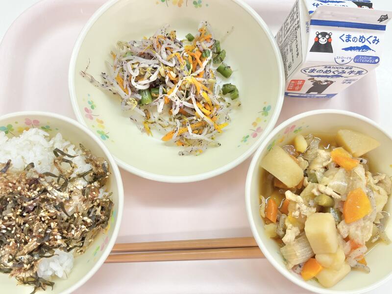 牛乳(本日、ふるさとくまさんデー。阿蘇地域の郷土料理。)