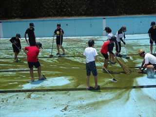 本日(4月7日)、新年度に向けての準備に来ていた生徒と職員で、ペンキ塗りをしました。薄くなっていた線が、鮮やかな黄色の線で塗られ、気分一新で明日からの新学期や入学式が迎えられそうです。