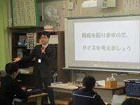 16日(金)、熊本大学教育学部附属中学校からT教諭をお招きして、2年生の社会科で研究授業を行いました。授業者はM教諭。本校の研究主任です。本時のめあては、「綱吉の政治は、社会によい影響を与えたと言えるのか?」。徳川綱吉の政治の特色を理解し、文学や浮世絵の作品などから、この時期の文化の特色を理解することが目標です。また、協働学習の学習方法としてジクソー法を取り入れました。