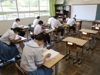 なかでも最も静かになるのは・・・・!? ”テスト”の時間です!! 今日は、3年期末考査2日目。国語、数学、保健体育のテストが行われています。