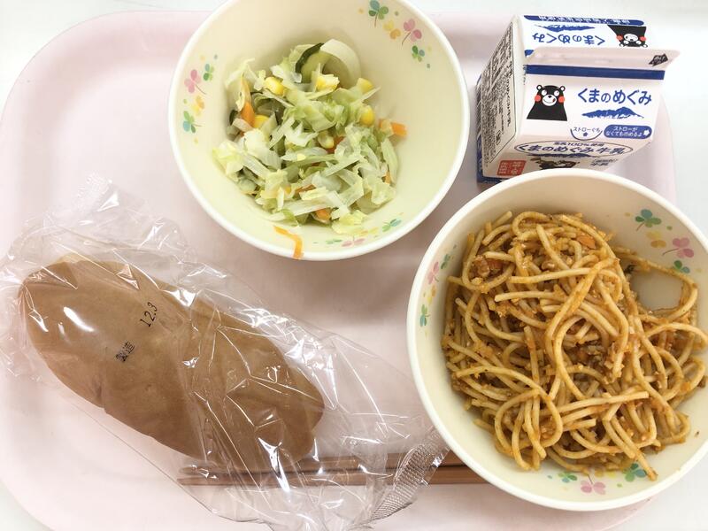 お茶蒸しパン、肉みそビーフン、ビーンズサラダ