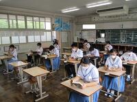 台風11号の通過直後で、吹き返しの風の音が時折聞かれましたが、「全校読書」のお陰で、落ち着いた雰囲気の中で今日一日が始まりました。