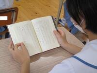 教室を覗いてみると、各自、思い思いに読書に親しんでいました。なかには、先日、八代市より寄贈いただいた「八代石工ものがたり」を読んでいる生徒も・・・。(実はHさんは、10月23日にデビューを予定しているボランティアガイドのメンバーです!さすが意識が高い!)