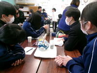 後半は、本校区の栄養教諭に、「緑茶の効果を知り、淹れ方を知ろう」と題し、給食講話をいただいています。お茶の生産地やお茶の効果、お湯の温度による成分の違いなどを学びました。急須に入れるお湯の温度を調整して、実際に味比べも行ったようです。普段何気なく飲んでいるお茶のおいしさを知った私たちでした。