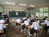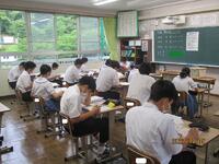 まず、朝自習。1年生はテストの受け方について説明を受けています。1年生にとっては、中学校で初めて受けるテスト、不正防止も含め、心得(時間一杯取り組む、ベストを尽くす・・・等々)を学びます。