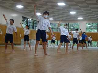 今日(8月24日)も放課後、各団でのダンス練習がありました。全体を通して踊り、細部について3年生が指示を出したり、隊形を変えて踊ったりしていました。