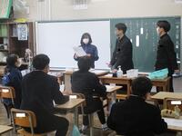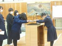 旧専門委員長からは、退任の挨拶として、「学校全体がよくなっていることを感じて嬉しかった。」「不安だったが、人前に立つことが長所になった。」「新しい活動を始めることの難しさを感じた。」「大変だったがたくさんのことを学ぶことができた。」「多くの皆さんに助けられてさまざまな行事ができた。」等、委員長を経験して学んだこと、成長したことを振り返りながら述べてくれました。