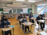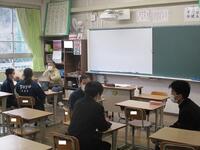 その後、6年生には中学校の授業を体験してもらいました。国語では「詩」の学習を、社会では「室町時代のクロスワード」に取り組みました。