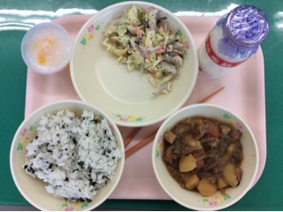 わかめごはん 肉じゃが かみかみサラダ カルピスゼリー