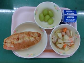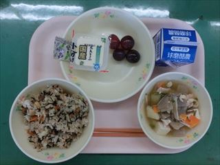 ひじきと大豆のごはん、ぶどう(←旬の食べ物)、