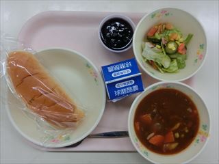 ミルクパン、てづくりゼリー、トマトのサラダ、