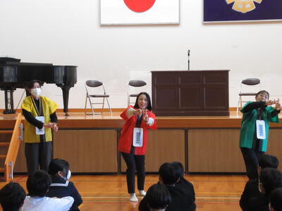 その後、給食センターで給食ができるまでの様子を劇にして紹介してくれました。業務内容や給食センターの方の思いなどを伝えてくれ、今後「感謝をしていただきたい」とまとめていました。