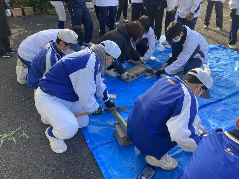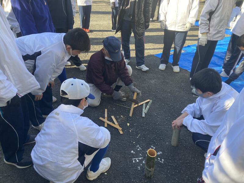 学校運営協議会委員の上村正雄様、久村昌司様のご指導のもと、正門に立派な門松が完成しました。門松づくりには、生徒会執行部をはじめ、各部活動などの有志、総勢40名以上の生徒が参加しました。今年1年間に感謝をし、来年希望に満ちた新たな1年がスタートしますように。
