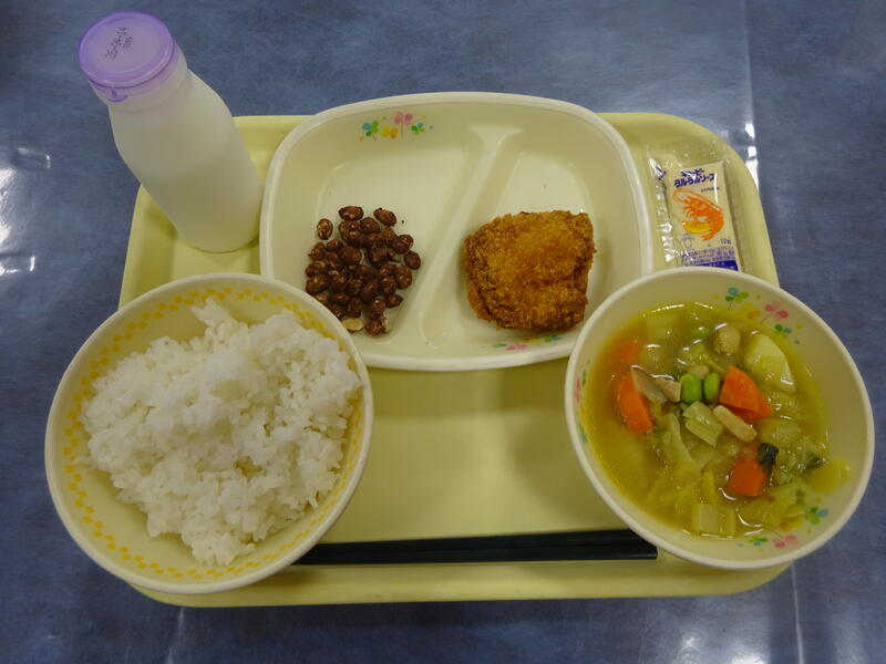 ごはん 牛乳 ホキフライ カレーポトフ ココアビーンズ