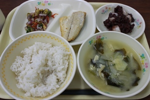 たくさんのメニューの中から選んでお皿に盛りつけていきます。食べきれないほどの美味しい給食にたくさんの笑顔が見られました。最後に、今まで美味しい給食を作っていただいた給食センターの先生方に感謝の気持ちを伝えました。
