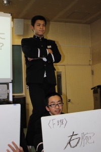 さて、集会では各委員会から反省と目標発表、そして、保健給食委員会の発表でした。テーマは「花粉症の原因と予防法」産中生も悩ませられている花粉症について、マスクの正しい付け方や部屋に入る際に服を払うなどの予防法の紹介がありました。
