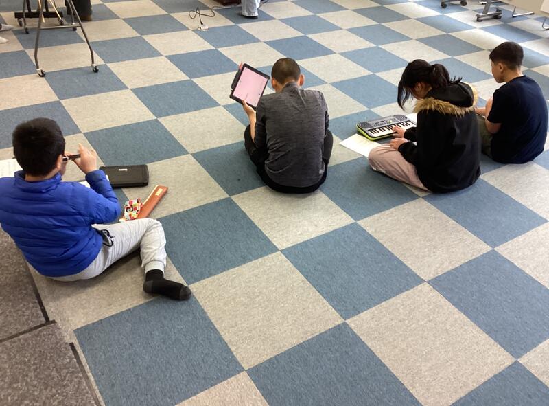 4年生の音楽の授業の導入部分です。音楽の基礎基本の内容に係る問題をタブレットを通じて回答しています☆
