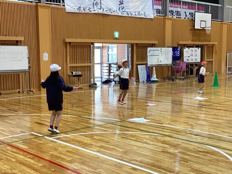 1~2年生の体育です。今日はなわとびを頑張っていました☆