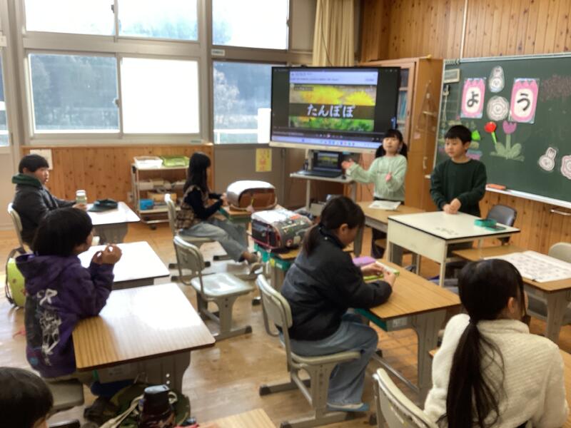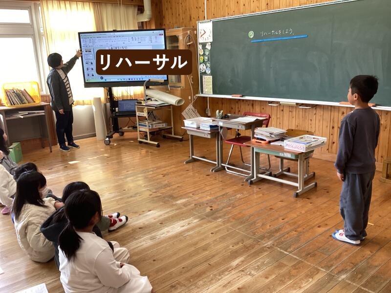 2年生です。明日の授業参観の発表の予行練習をしています☆
