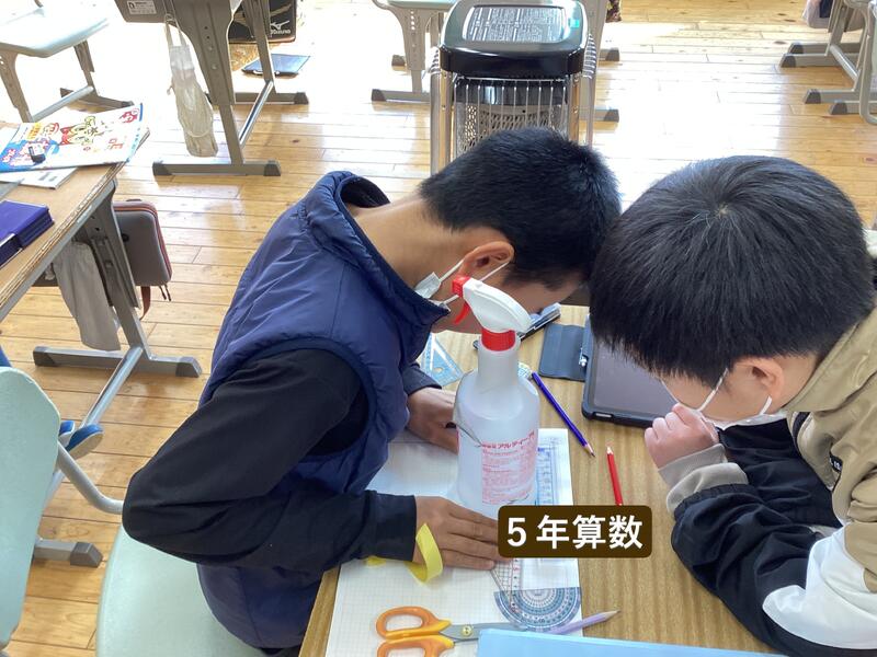 5年生です。算数で円の直径を測っているようです☆