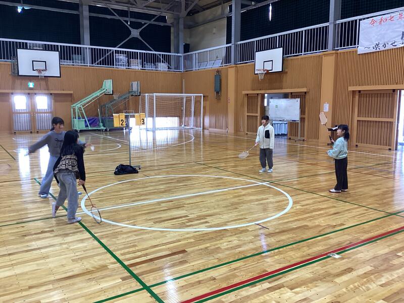 昼休みです。3年生の女の子がバドミントンを行っています☆
