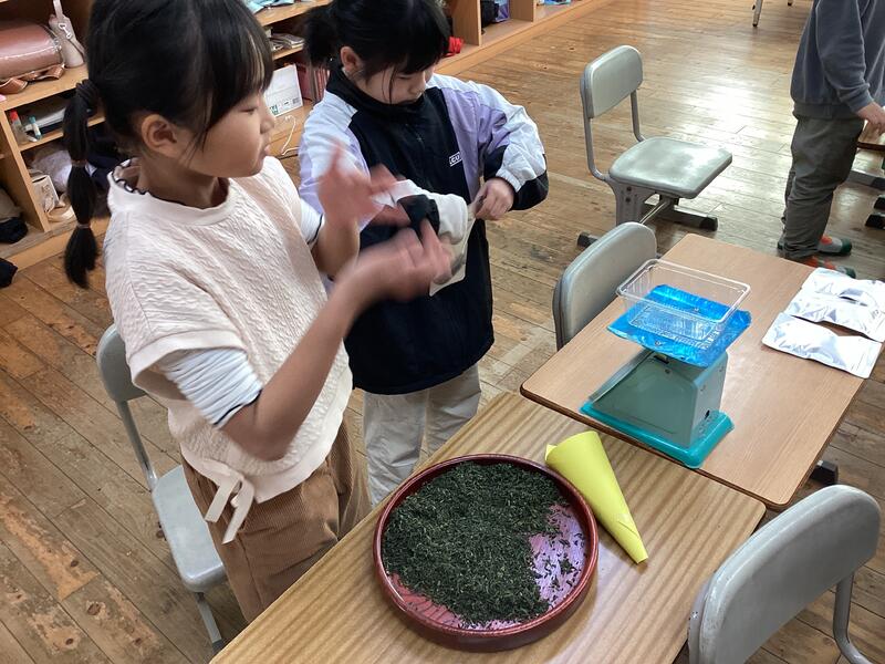 3年生です。1stステージで以前茶摘みを行いましたが、その茶が加工されました。仕分け作業を3年生が担当しています☆