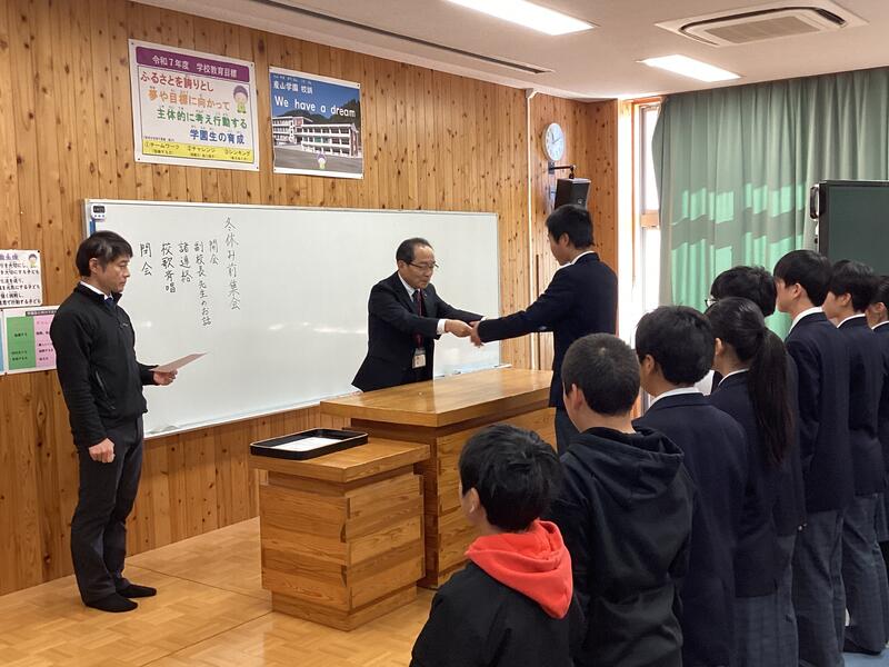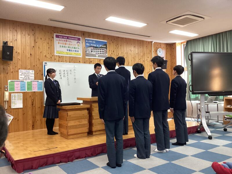 3校時に冬休み前集会・生徒会専門委員長退任式が行われました☆
