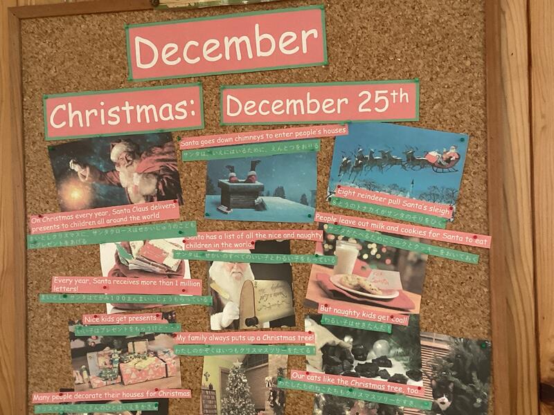 今日は12月25日。メリークリスマス☆ です(ALTの先生の掲示コーナーから・・・)