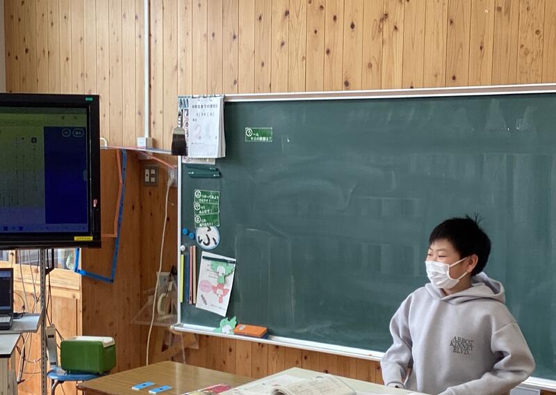 まずは5年生の国語の授業。授業のはじめに、連休のことについてスピーチしているようです☆