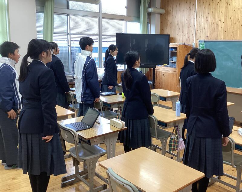 7年生のうぶやま学の授業。開始前のあいさつです☆