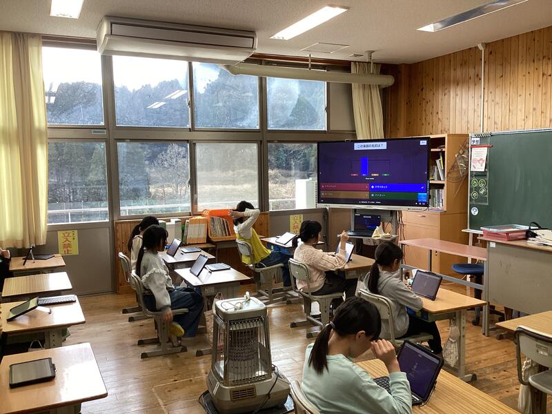 4年生の音楽の授業の導入部分です。音楽の基礎基本の内容に係る問題をタブレットを通じて回答しています☆