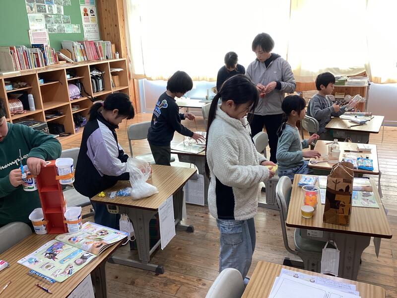 3年生の図工の学習です。空の容器を組み合わせて作成しています☆