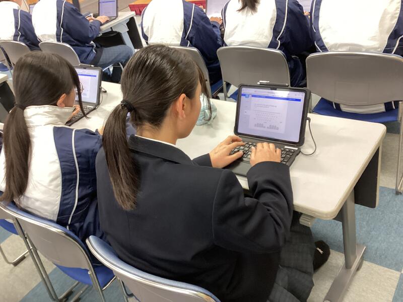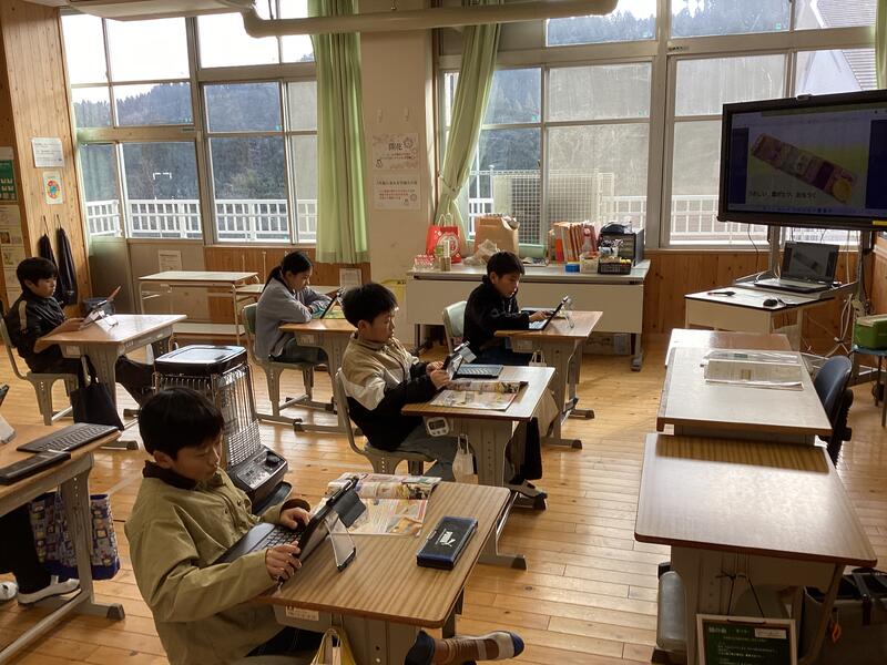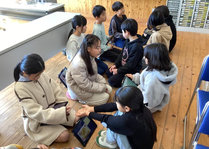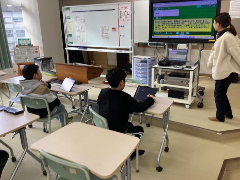 5年生です。「日本の民謡」について、学園生が調べたことを確認しています☆