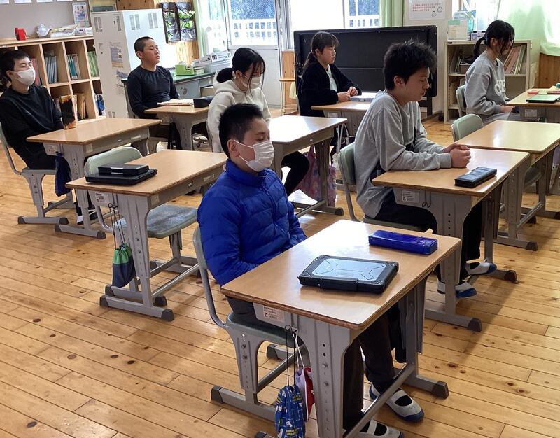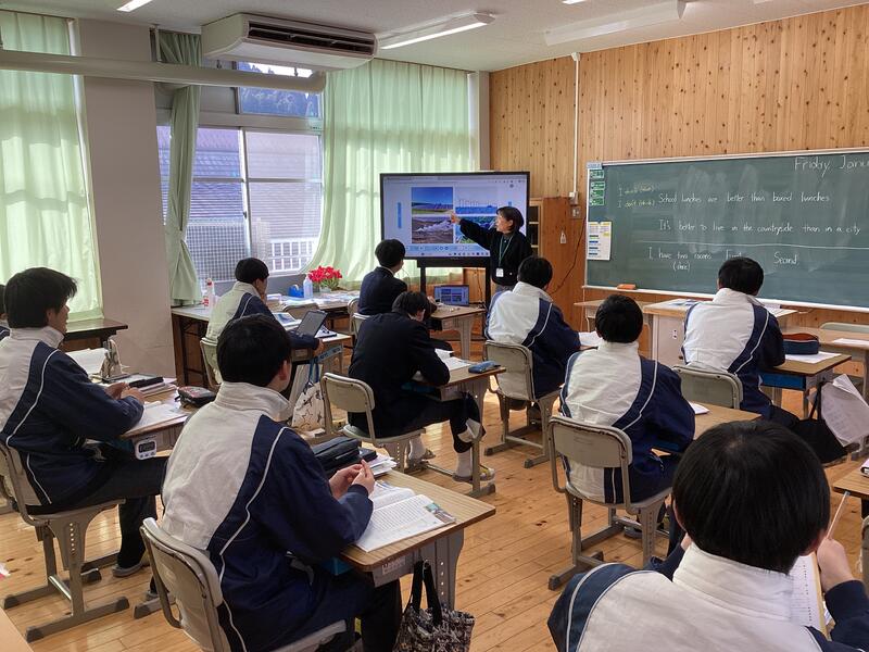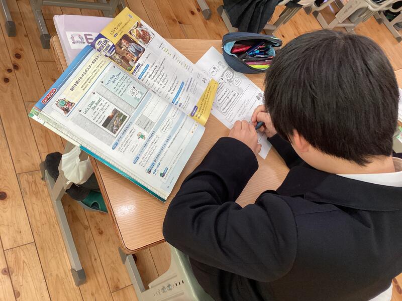 本日は昼休みに9年生と面接の練習を行っていたため、授業中の画像をご紹介します。