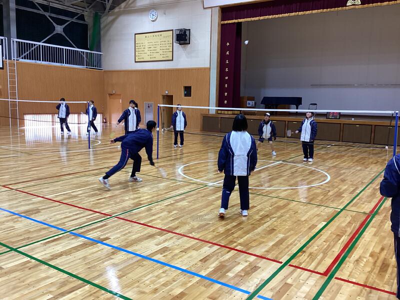 7~8年生です。体育でネット型のバドミントンの授業を合同で行っています☆