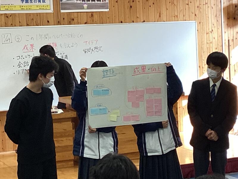 学園生はグループごとに成果と課題をまとめ、全体に紹介しました☆