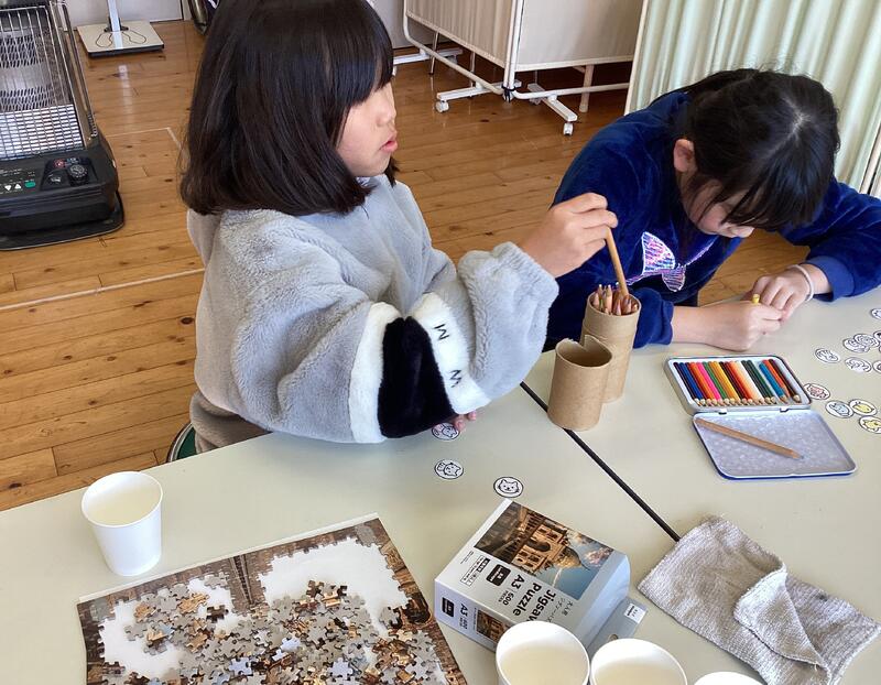 昼休みです。4年生が保健室でジグソーパズルに取り組んでいます。全部で432ピースです・・・☆
