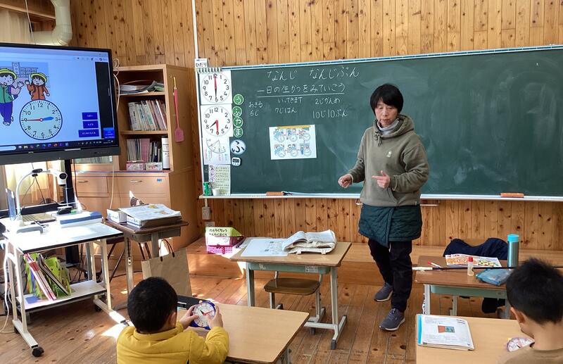 さて、授業等の様子も少しだけ紹介します☆ 1年生です。算数で時計の学習です☆