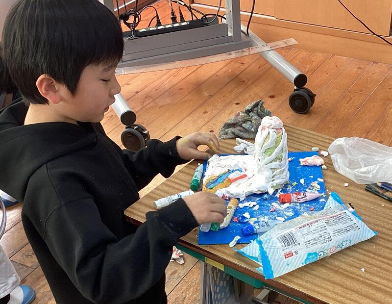 6年生の図工の授業です。紙粘土を使った制作に取り組んでいます☆
