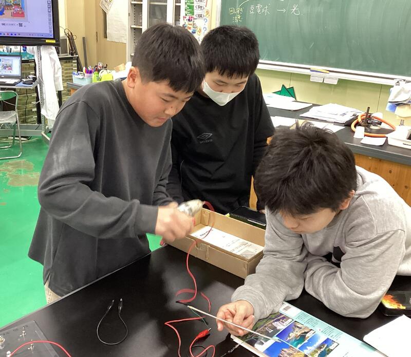 6年生の理科です。手回し発電機を使って、発電を確かめています☆
