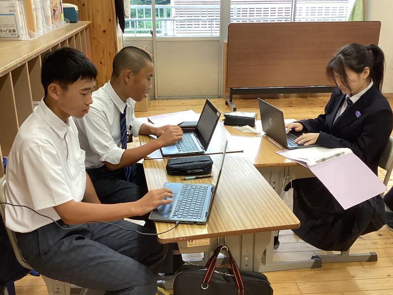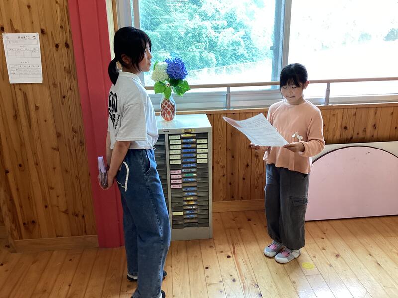 2人の学園生が「振り返り」を発表しています☆(右は進行役の8年生です☆)