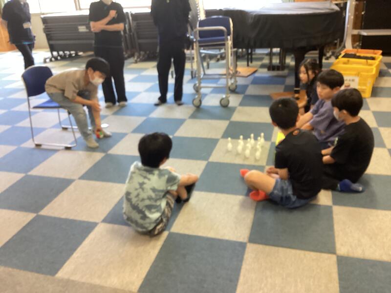 体育館が賑やかでした。先生と一緒に遊ぶ1~3年生です☆