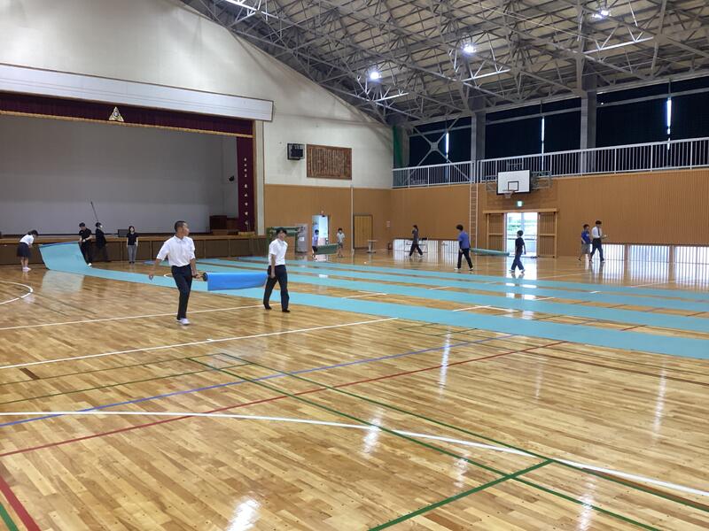 昼休みです。5年、6年、8年、9年とバドミントン部の先輩後輩で語り合っています☆